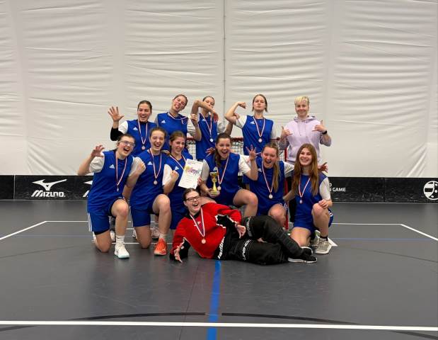 V okresním kole ve florbalu kategorie V.D. vybojovaly holky z vyššího gymnázia pěkné 3. místo.