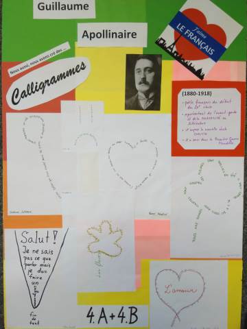V hodině francouzštiny člověk může na chvíli zapomenout na přesnost, rozum, logiku a může se nechat unášet proudem fantazie. Po vzoru francouzského básníka Guillaume Apollinaira pak vzniká poezie. Zkusili jsme vytvořit vlastní kaligramy - básnické útvary, kde forma kopíruje obsah. Líbí se vám?