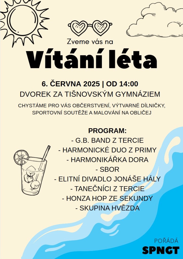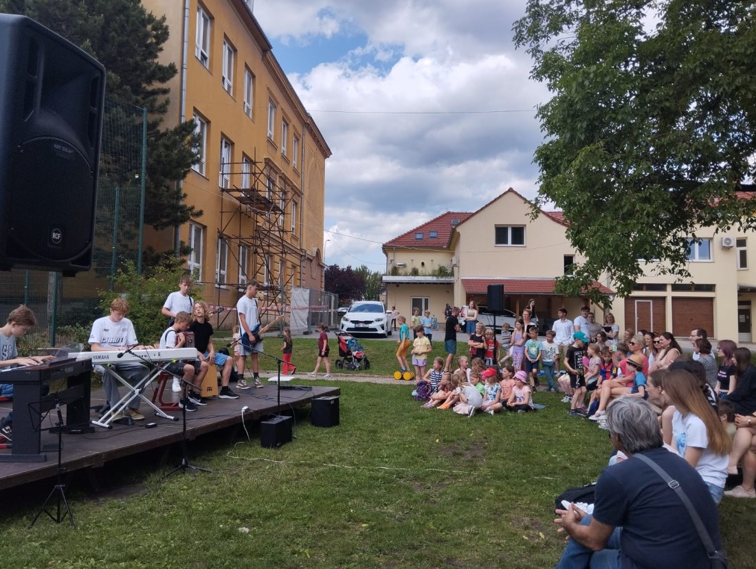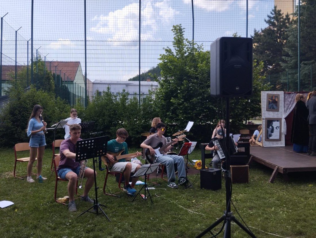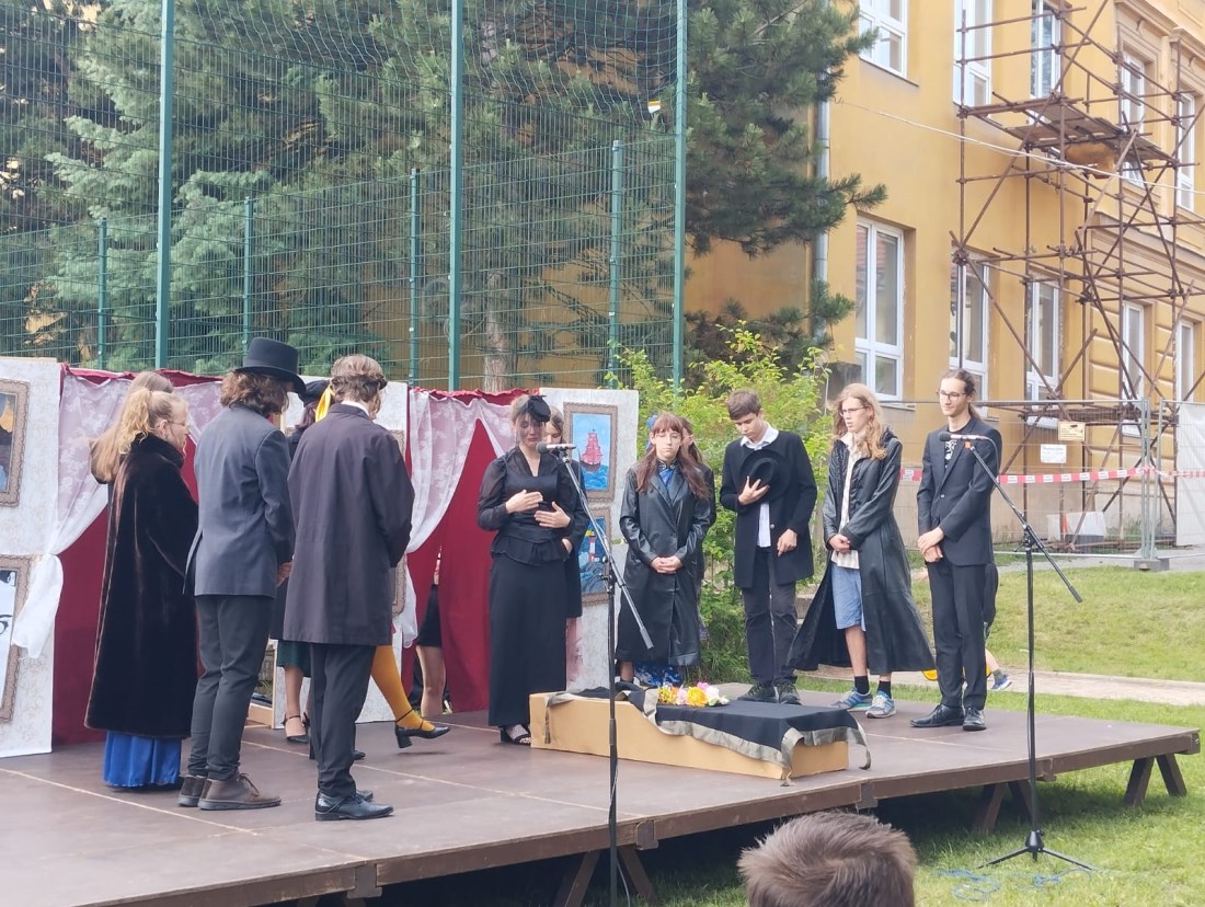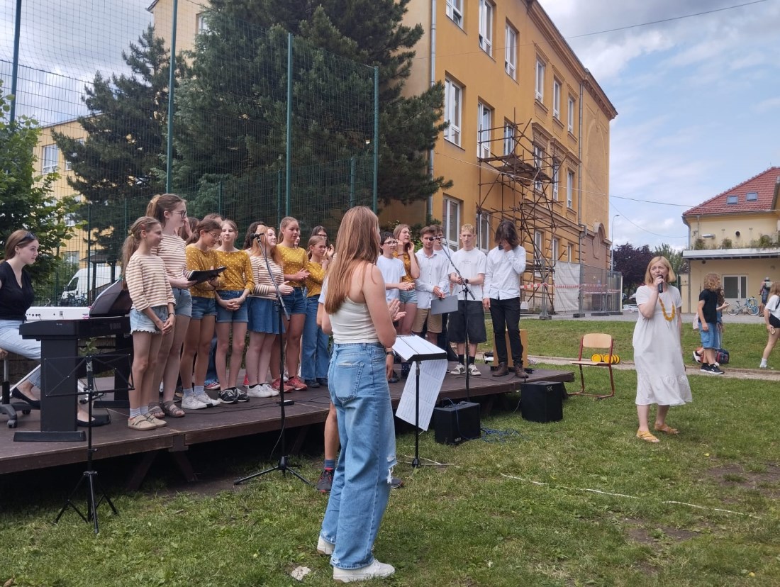 Stalo se už téměř tradicí, že parlament nižšího gymnázia pořádá vždy na sklonku jara či chcete-li na začátku léta akci, která je jakýmsi komunitním setkáním našich studentů, jejich rodičů, kamarádů, dětí z okolních škol, prostě všech, co se chtějí přátelsky setkat na dvorku za naší školou. Děti z parlamentu chystají vždy bohatý program i spoustu druhů občerstvení. Nejinak tomu bylo i letos, akce se konala už potřetí a jelikož proběhla 6. června, dostala podtitul Vítání léta. Letos nás na rozdíl od loňska netrápilo počasí, to bylo vskutku ukázkové. Vlastně všechno se vydařilo na jedničku. Ukázalo se, že předchozí zkušenosti nám velmi prospěly a všechny parlamentní organizační sekce se svých úkolů zhostily skvěle. Měli jsme několik druhů sladkých koláčů, točenou limonádu, smažené burgery a čerstvě připravované vafle, takže jsme uspokojili gurmány všech typů. Opět jsme zahajovali kvalitním vystoupením školního sboru, dále proběhla dvě harmonikářská vystoupení, proložená tanečním číslem studentů a studentek z tercie pod vedením Aničky Sedláčkové a velký potlesk sklidila také nově založená kapela chlapců ze stejné třídy. Poté předvedl svoje akrobatické umění Honza ze sekundy a na závěr této části zazpívala Hanka z kvinty. Pak následovala přestávka, kdy se diváci kromě občerstvení mohli zúčastnit kreativních dílniček, nechat si něco namalovat na obličej, něco vyhrát na kole štěstí nebo si prohlédnout výstavu recyklovaných mozaik vytvořených rukou sekundánů. No a v druhé části programu nás opět čekalo autorské představení Elitního divadla Jonáše Hály, tentokrát dokonce muzikál z pera sester Kašparcových, doprovázený živým orchestrem. Byla to náročná akce, letos však přišlo ještě více rodičů a spolužáků než v předchozích letech a všichni se tvářili spokojeně, tak jsme měli příjemný pocit zadostiučinění. Přispěli jsme tak také k oslavám 105. výročí založení naší školy.